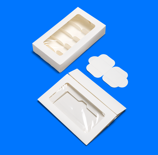 - Опциональные ложементы, которые можно согнуть и разделить на две части по линии перфорации, для удобства потребления десертов.