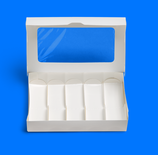 Представляем вашему вниманию уникальную упаковку для эклеров FORGENIKA ECLAIR, рассчитанную на 5 штук. Эта упаковка создана из белоснежного SOFT-TOUCH картона, который обеспечивает не только элегантный внешний вид, но и высочайшую защиту ваших десертов.
